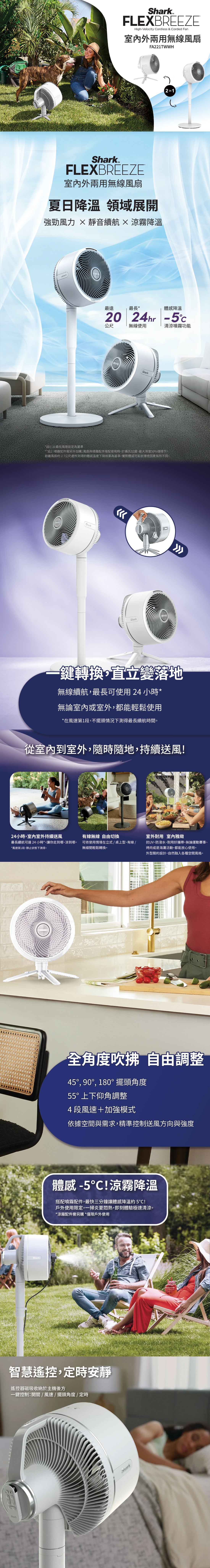 雙11限時特價再送調理機↘Shark-FlexBreeze 室內外兩用無線風扇 #FA221TWWH
