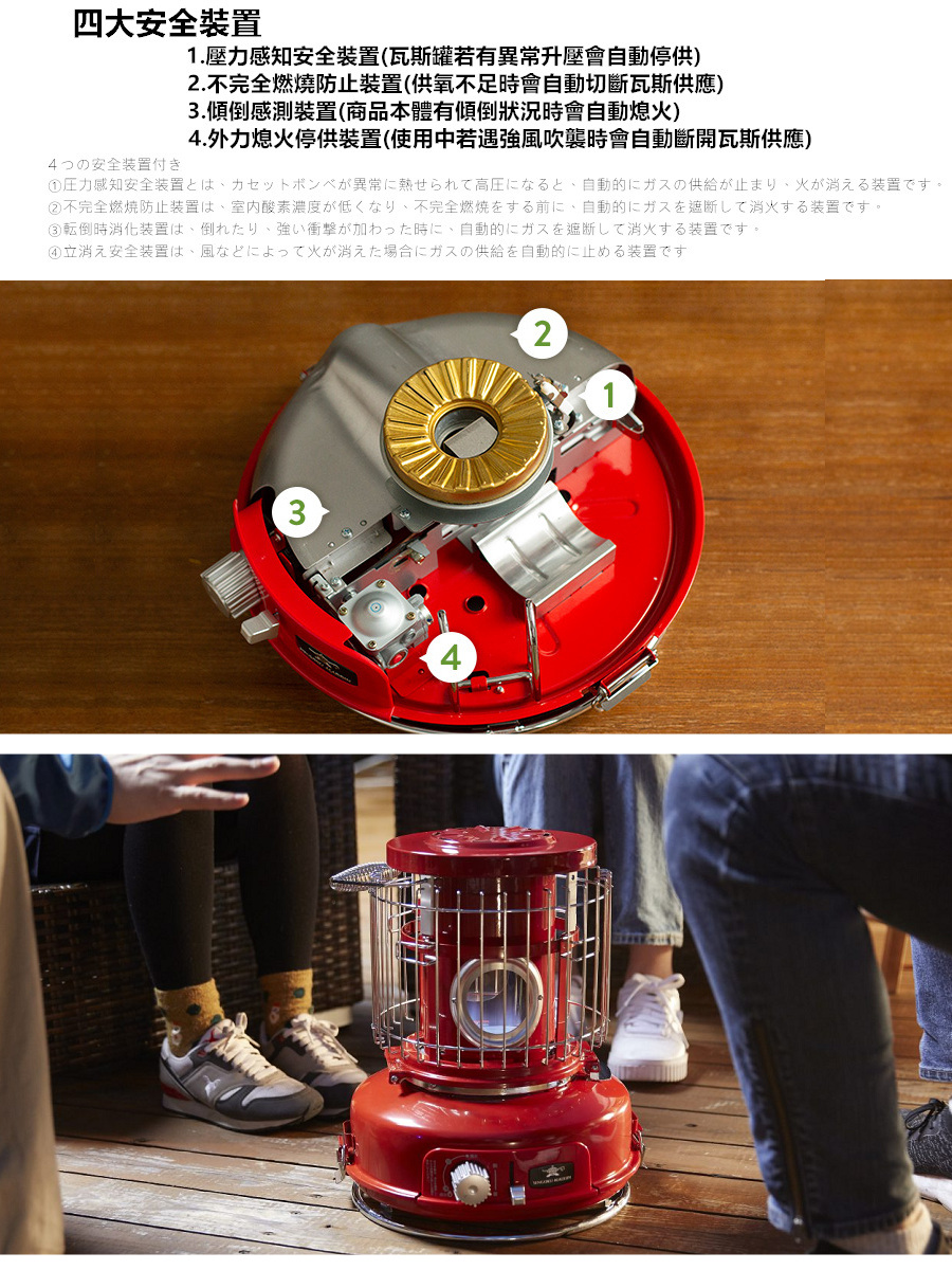 | 安全裝置: | 壓力感知安全裝置、不完全燃燒防止裝置、傾倒時滅火裝置、自動滅火安全裝置 |