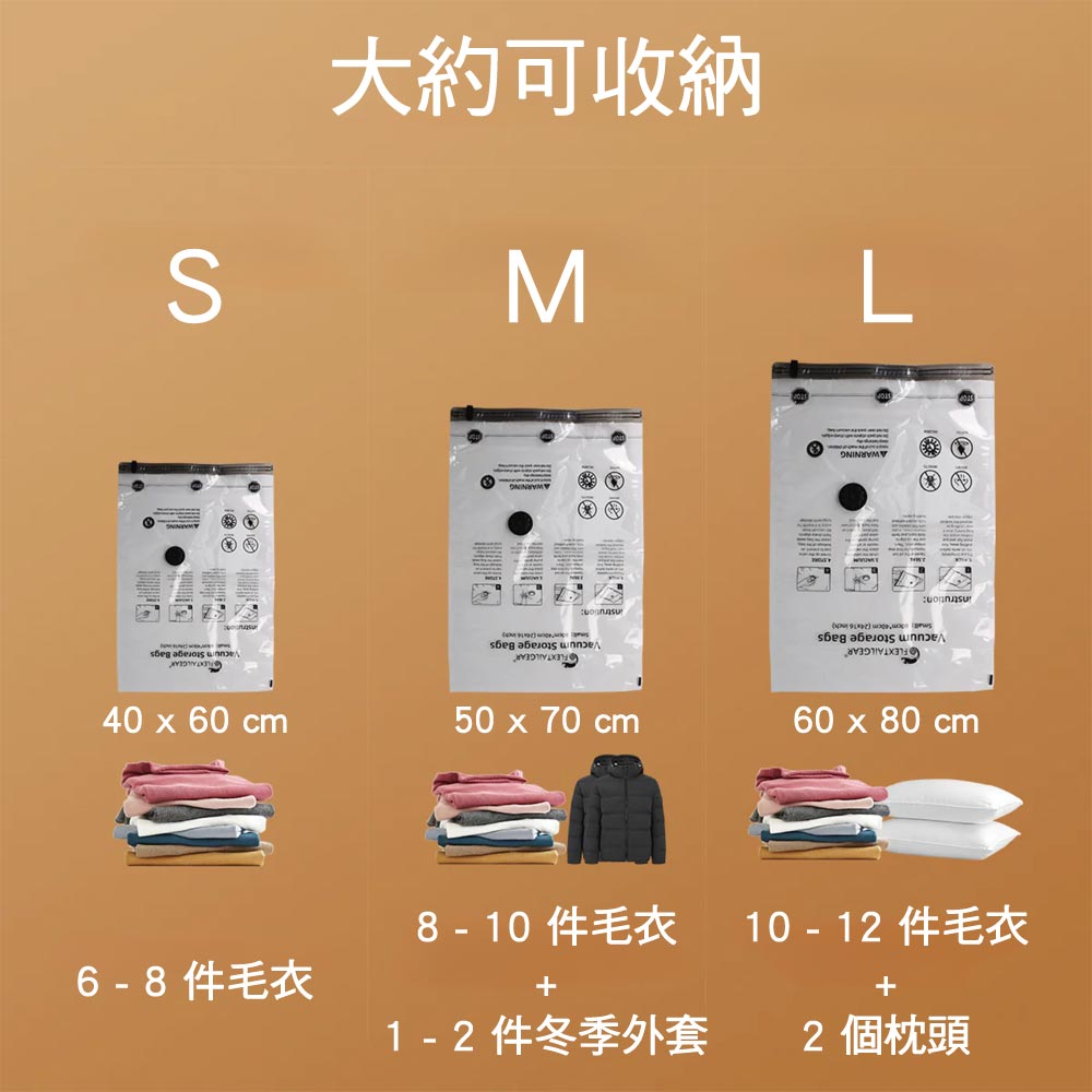 節省 80% 空間:適用於衣物、棉被等大容量收納,讓行李或家中空間更整潔