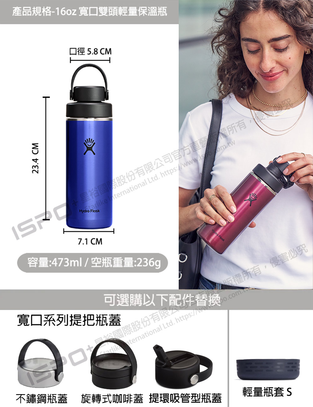 Hydro Flask-16oz/473ml 寬口 雙頭 輕量 真空 保溫瓶 曜石黑 #HFLW16LWFCC080