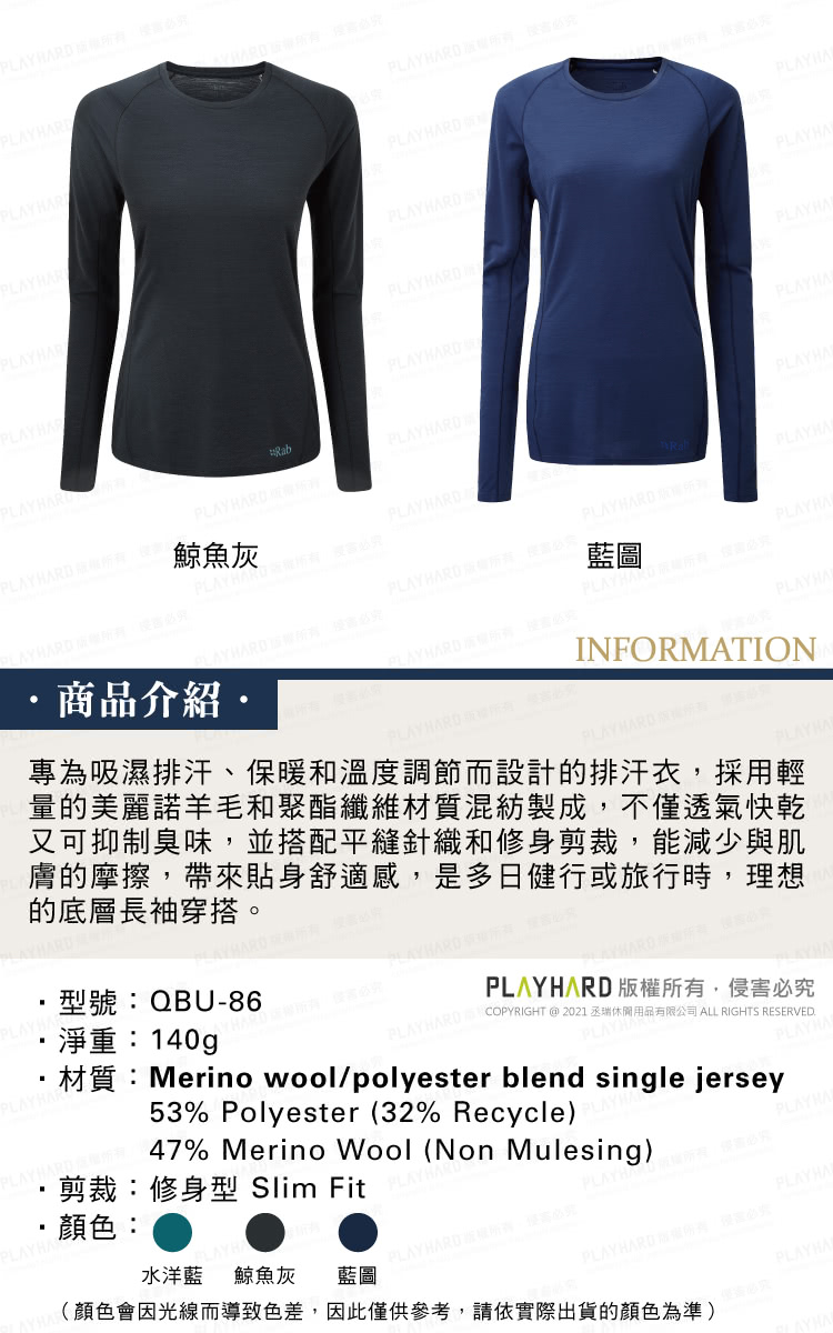 Rab-女 Forge LS Tee 長袖羊毛透氣排汗衣 水洋藍 #QBU86